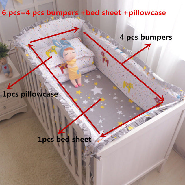 6 pcs:: 4 Pcs Bumpers + Bed Sheet +Pillowcase